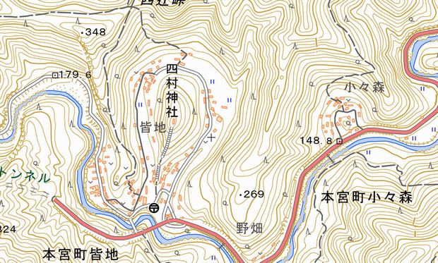 最後の写真が皆地の還流丘陵・四村神社を望む
