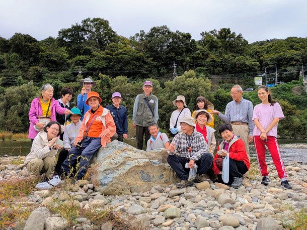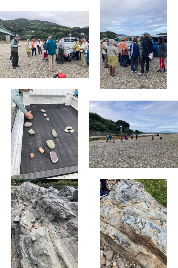 「紀ノ川と粉河寺庭園で結晶片岩を観察」