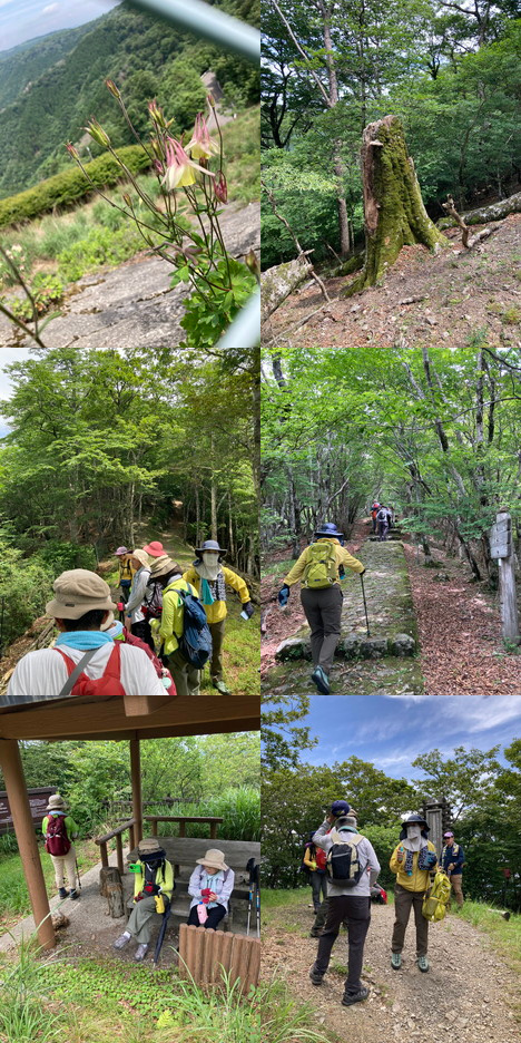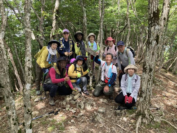 2025 0706 第54回 公式巡検の開催でした。 元々 「越戒の滝」周辺の予定でしたが、 6/22の下見にて、 林道が荒れて通行止めということが判明、 6/28 の定例会にてコースを変更し、高原散策に変更しました。天気よしと涼風が気持ち良く、ぶな等の新緑の中、13000歩の歩程でした。この尾根筋コースは東西方向のコースで気持ちの良いアップダウン(護摩壇山1372M-龍神岳1382M-耳取山1363M-千の時峰1344M)が続き、西は森林公園入り口から東は千の時峰迄足慣らしには最高のルートでしょう。お勧めのルートです。お疲れ様でした。