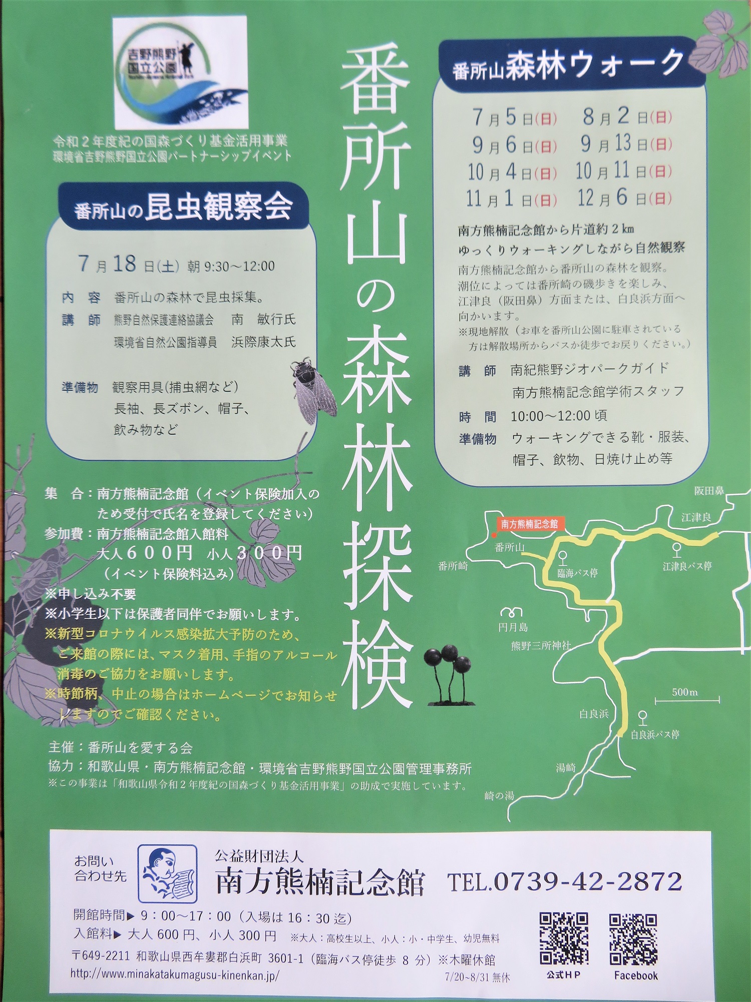 白浜町番所山森林探検イベントお知らせ全8回の森林ウォーク 申込不要