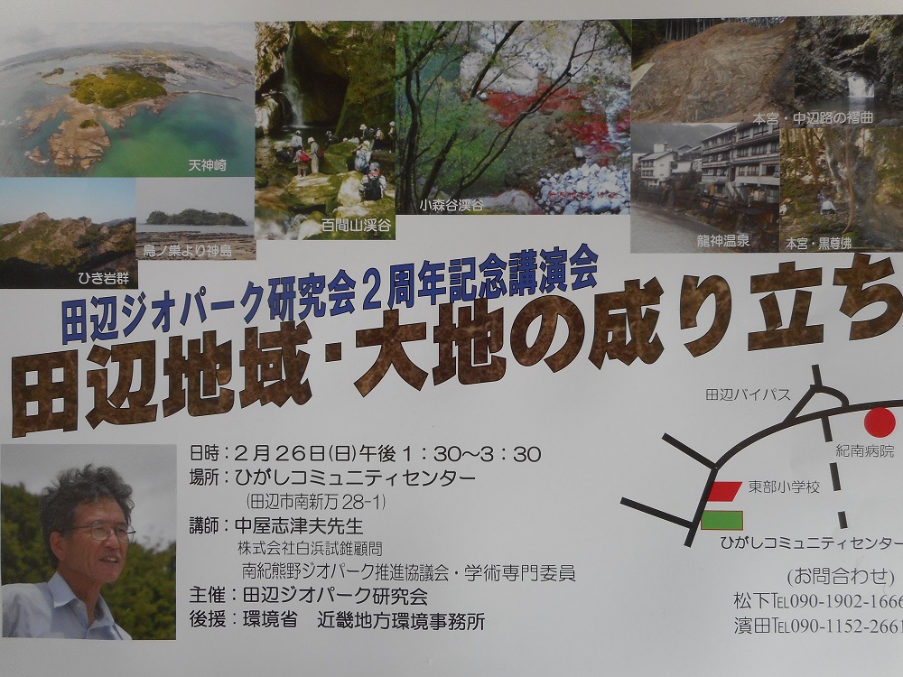 田辺ジオパーク研究会発足2周年記念講演会 2月26日(日曜)13:30〜15:30
