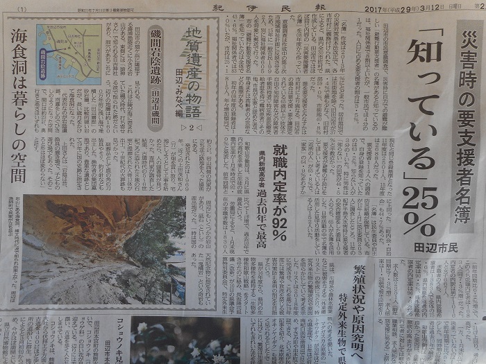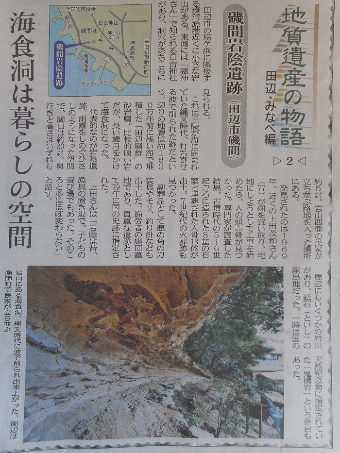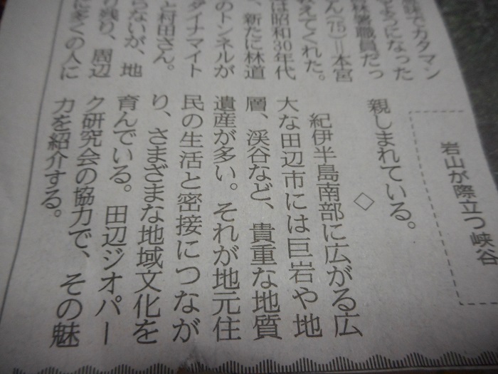 本日から、紀伊民報社「地質遺産の物語 田辺・みなべ編」シリーズ始まりました。