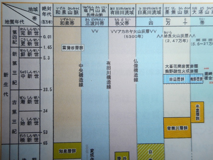 枕状溶岩・マンガン採掘跡・ソールマーク「グルーブキャスト」・龍神温泉等。