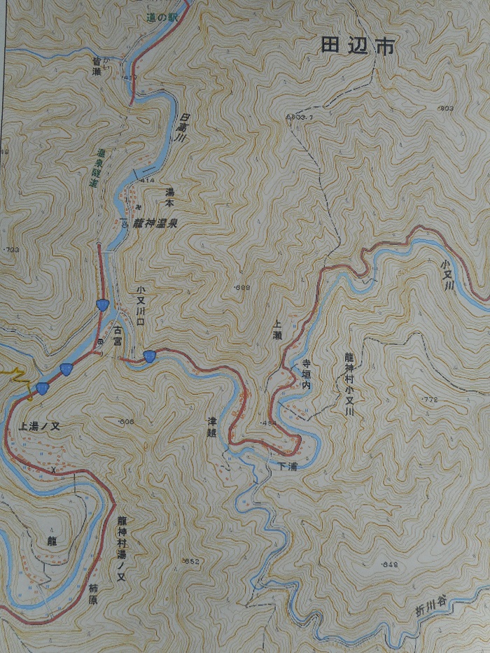 龍神村小又川〜元湯周辺(白亜紀 日高層群龍神層)。