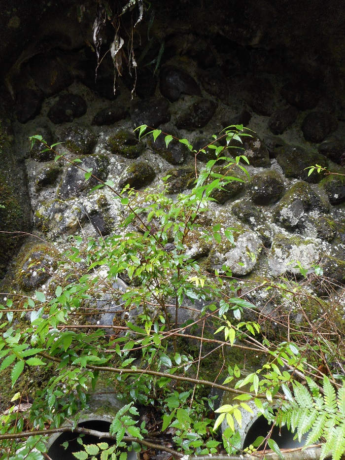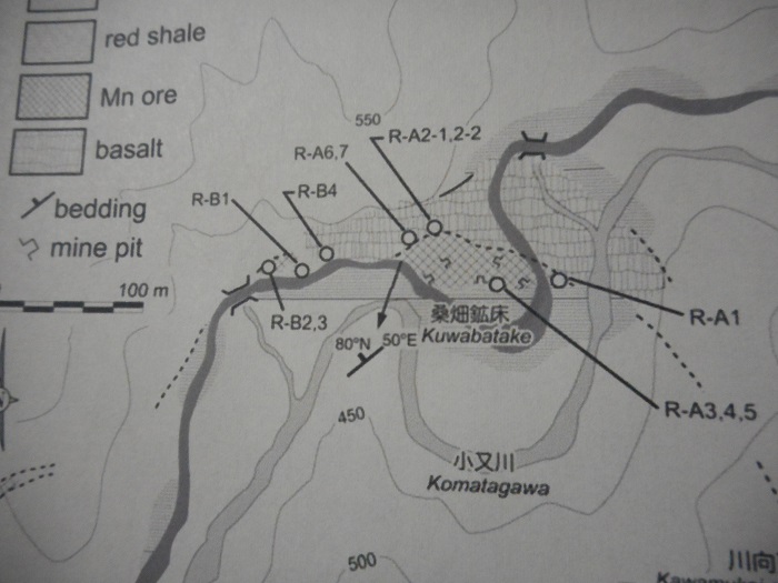 画像は、コンクリートで封鎖されたマンガン採掘跡と採掘箇所地図