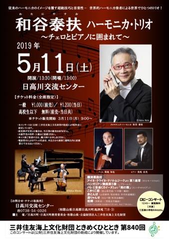 和谷泰扶ハーモニカトリオ 〜チェロとピアノに囲まれて〜日 時 5月11日(土曜日)