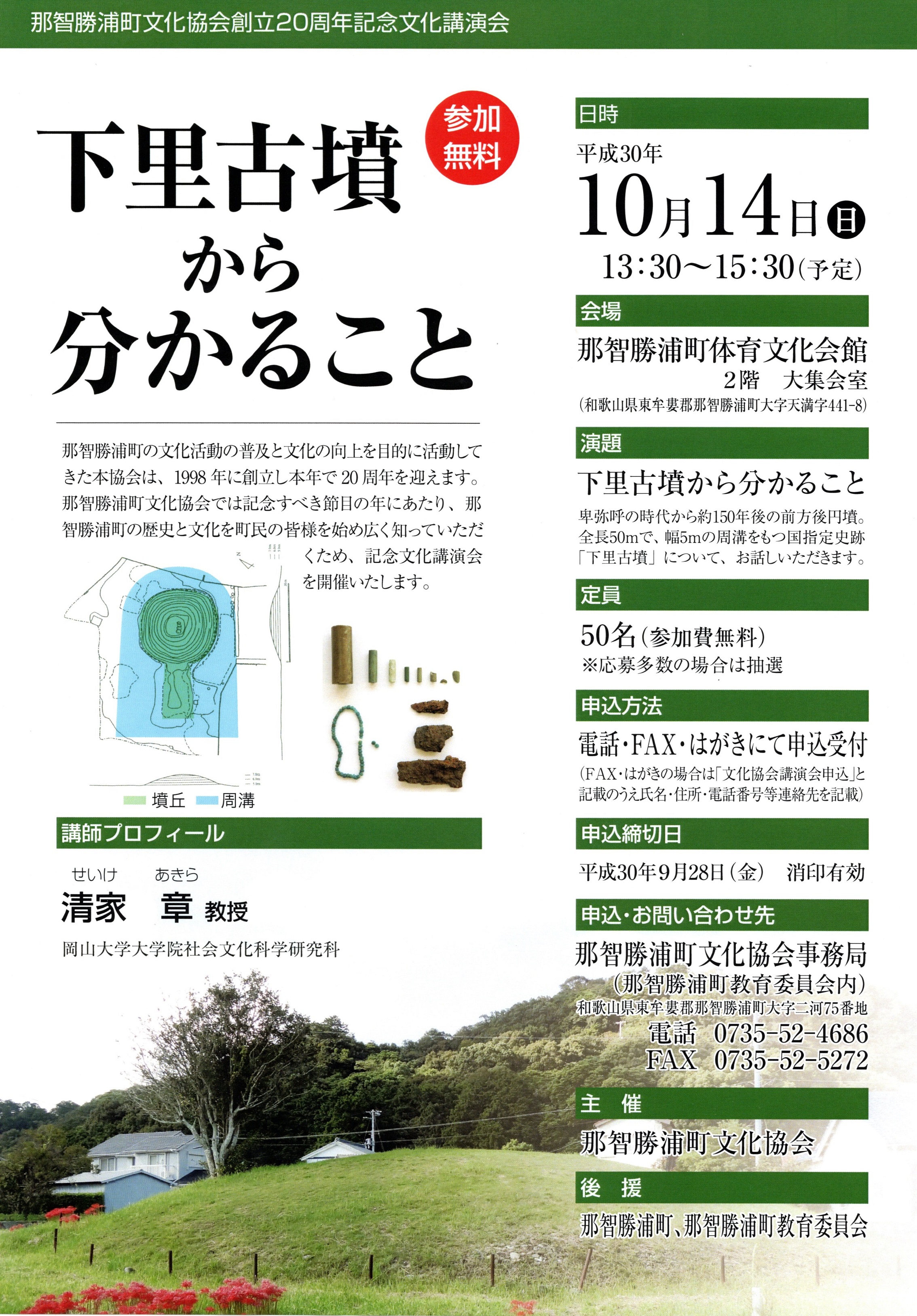 那智勝浦町文化協会創立20周年記念文化講演会のお知らせ講師 清家 章教授(岡山大学大学院社会文化科学研究科)